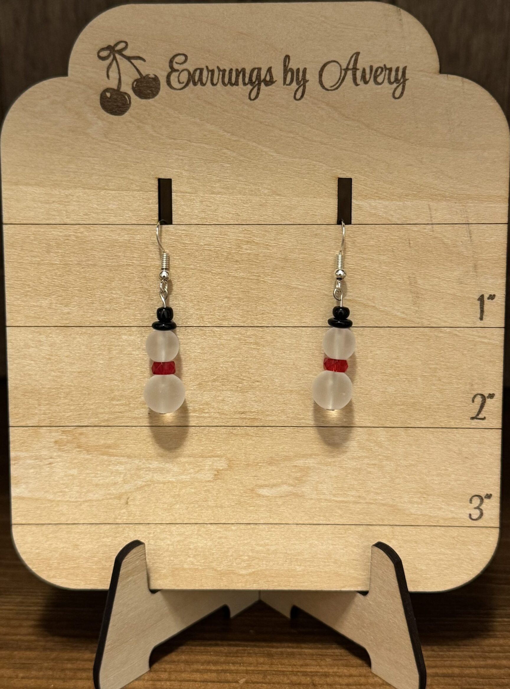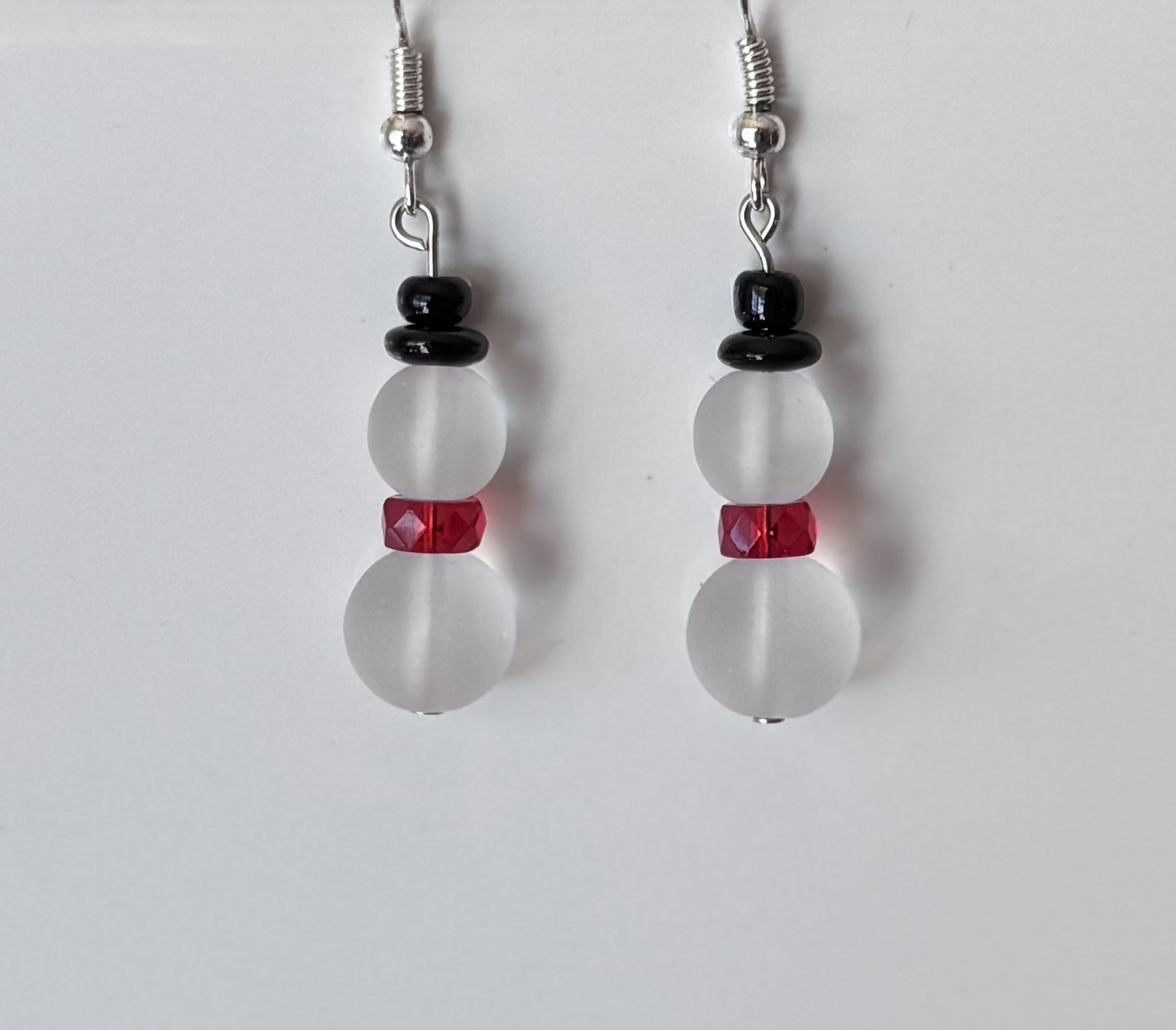 Adorable snowmen featuring beautiful, lightweight frosted glass beads.